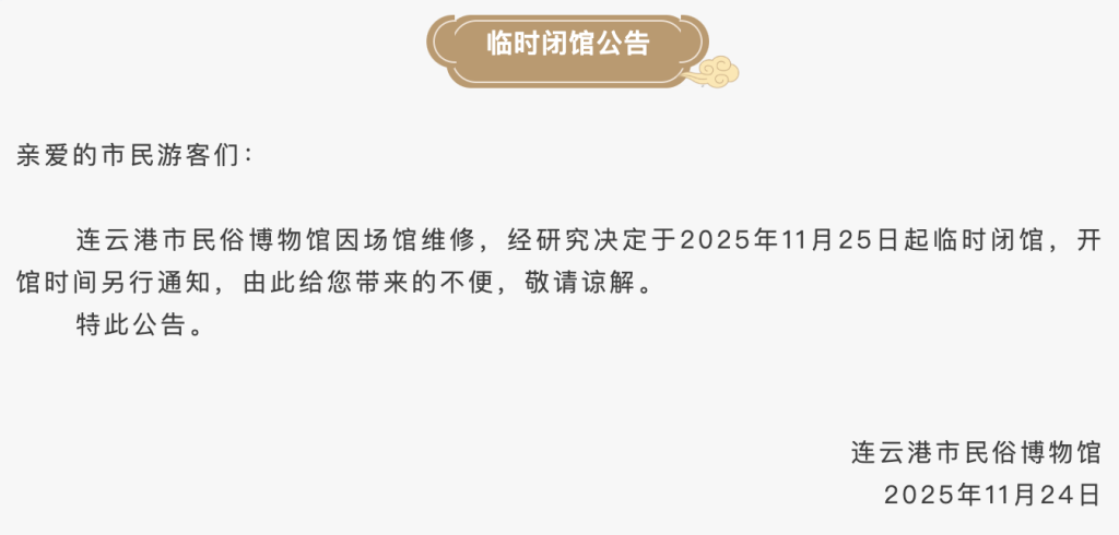 不外,也有不少博物馆仅晓示“临时闭馆”,但并未公布具体的闭馆时长。