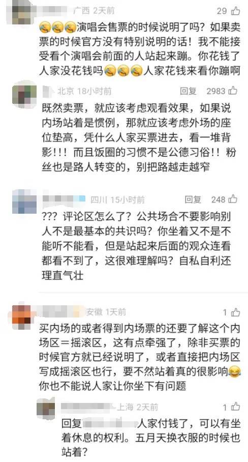 孙女士先容,老练的东说念主可能皆知说念,内场是摇滚区,在快歌部分,基本上人人皆会站起来,随着一齐唱。五月天演唱会以快歌居多,摇滚区歌迷旧例是快歌耸峙齐唱、慢歌坐下观赏,但后排不雅众赫然不了解这一“攻略”,单纯合计“演唱会就该坐着看”,导致现场体验感全无。