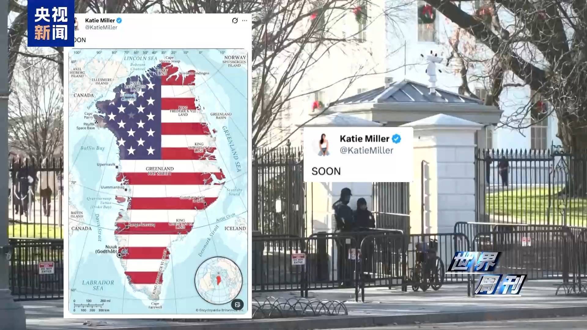 rr1月3日,好意思军突袭委内瑞拉本日,白宫办公厅副主任斯蒂芬·米勒的爱妻凯蒂·米勒,在酬酢媒体发布了一则帖文:一张被涂上好意思国国旗情愫的格陵兰岛舆图,配文是大写的英文单词“很快”。